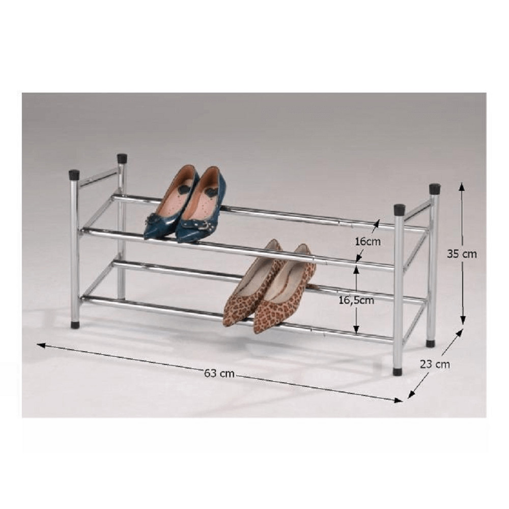 2-soros állítható cipőpolc, krómozott/fekete, TEA