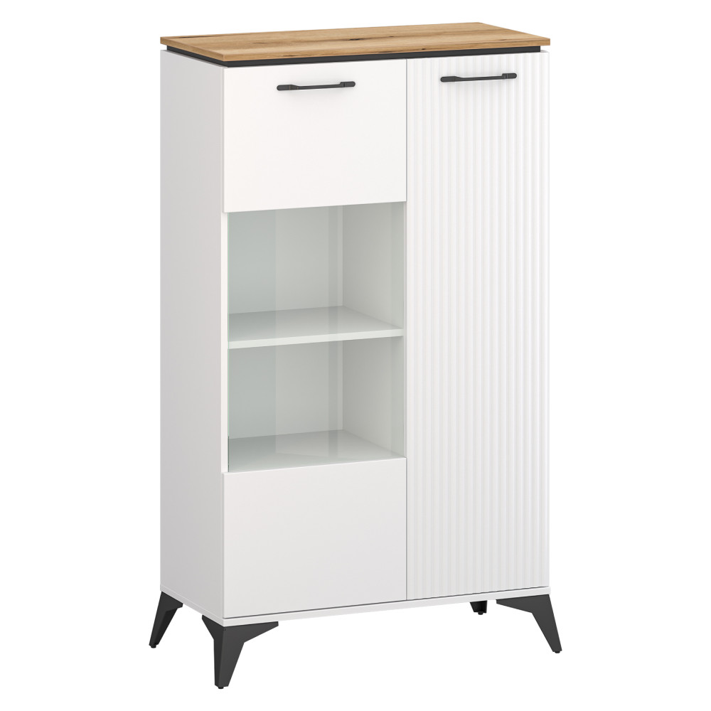 Alacsony vitrin, fehér/evoke tölgy, VELIS 1D1W