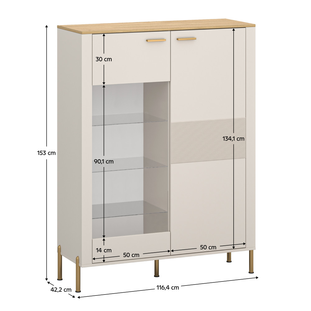 Alacsony vitrin, kasmír/kő tölgy, RUNOL 1D1W