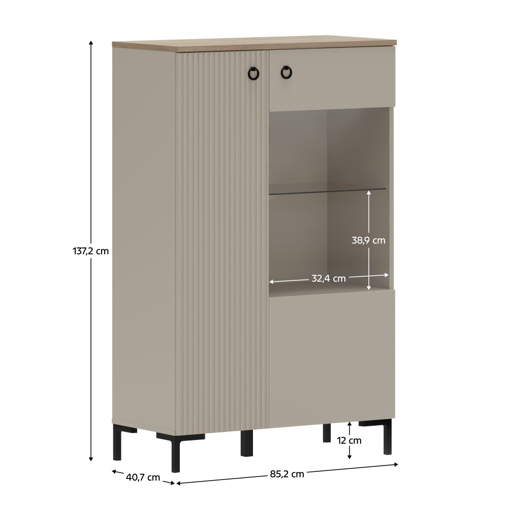 Alacsony vitrin, szürkésbarna Taupe/silverjack tölgy, DOMCA 1D1W/140