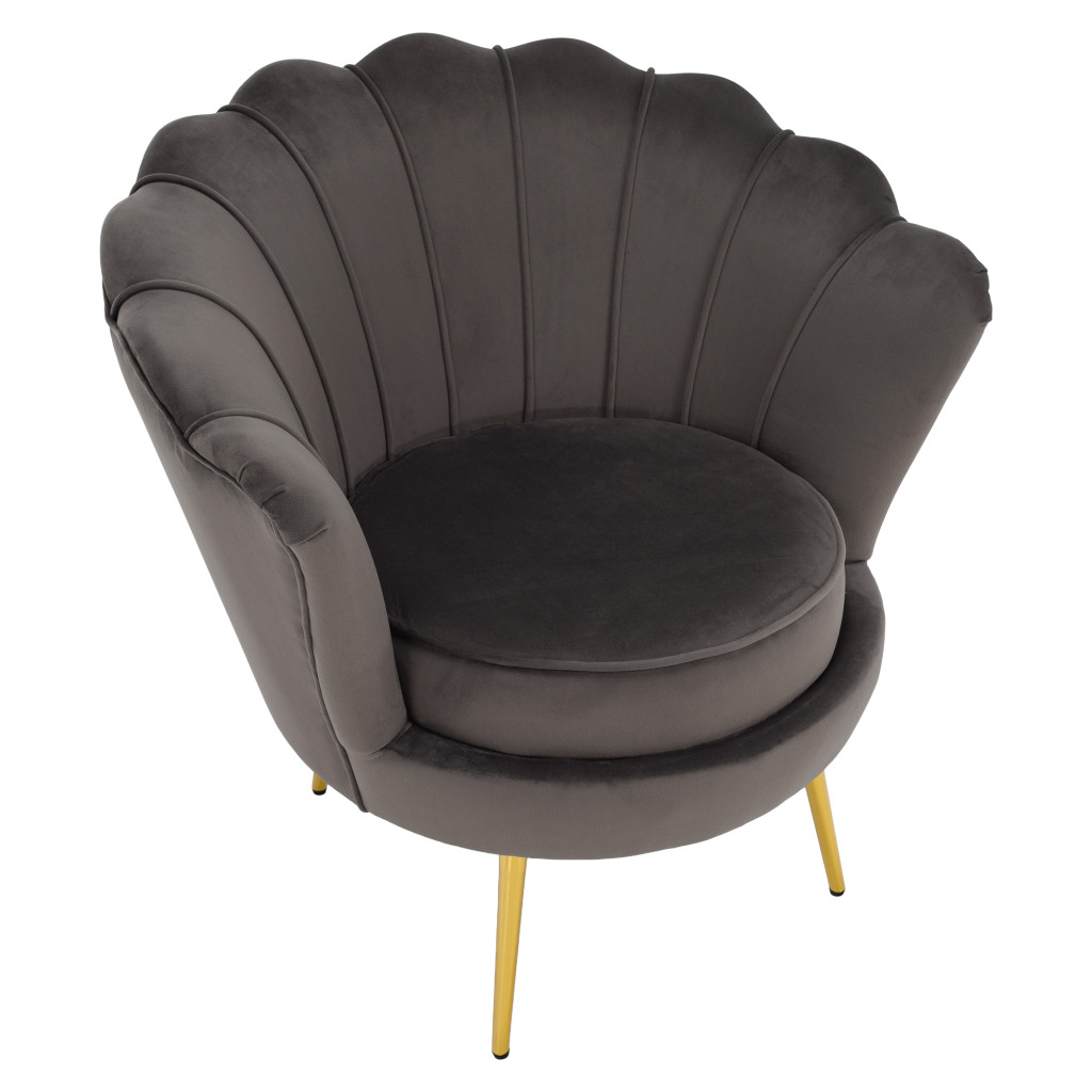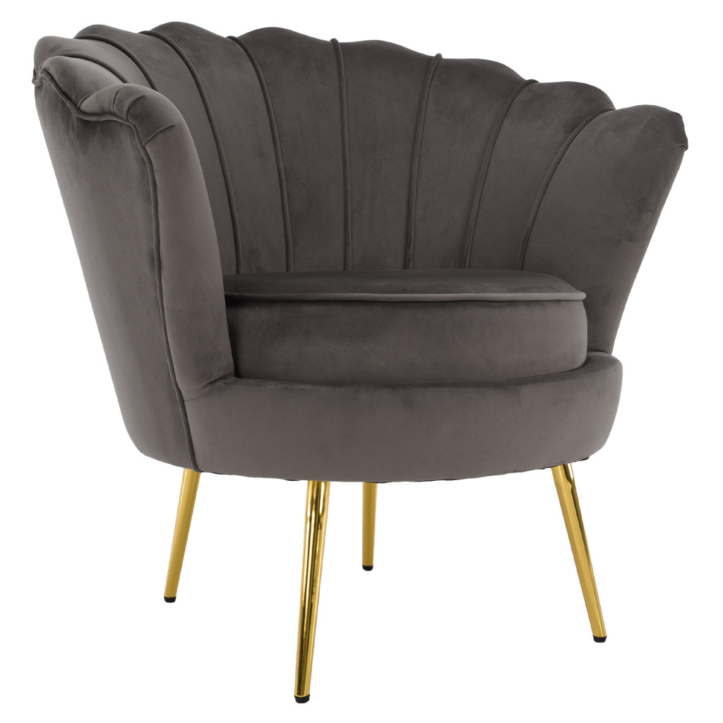 Art-deco stílusú fotel, szürkésbarna Velvet szövet/gold arany króm, NOBLEO