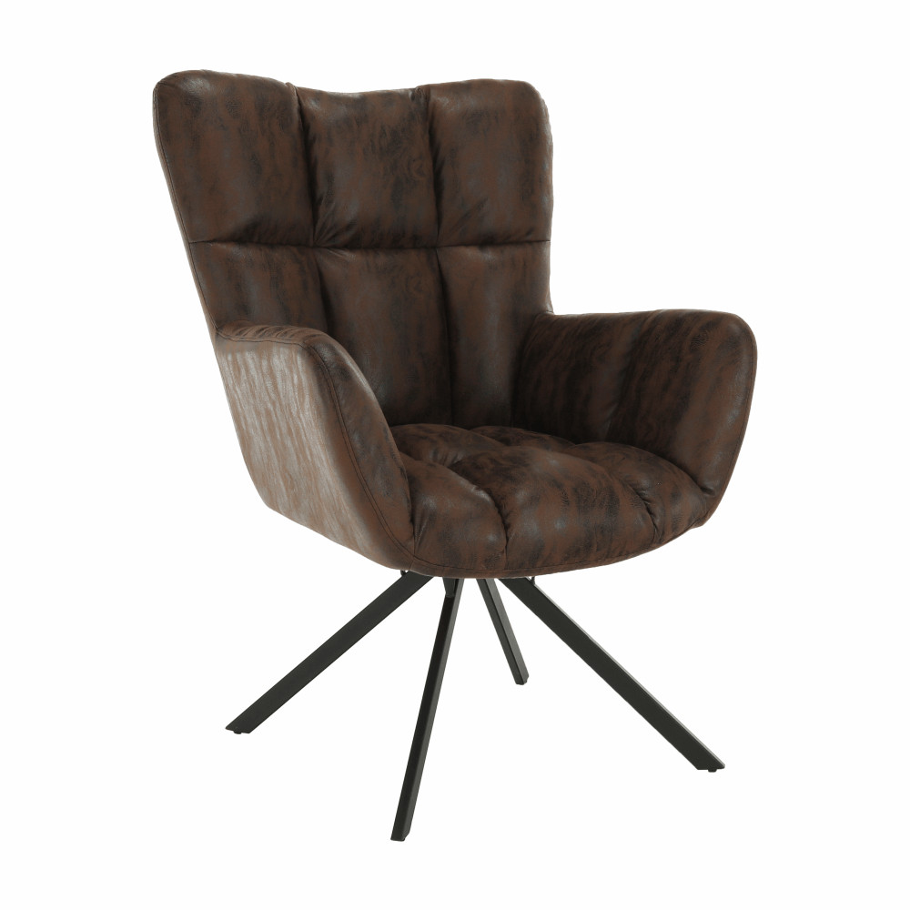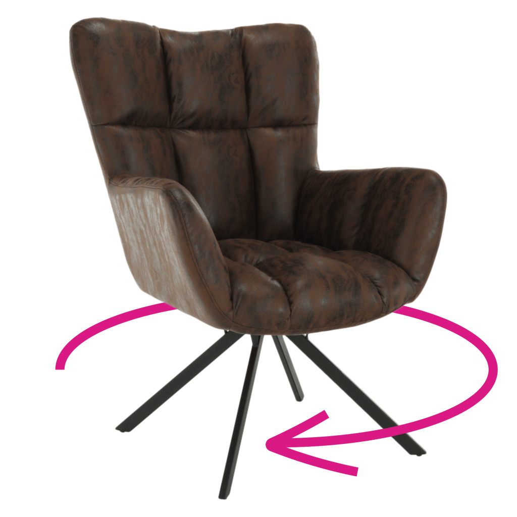 Dizájnos pörgő fotel, szövet, csiszolt bőr hatással barna/fekete, KOMODO