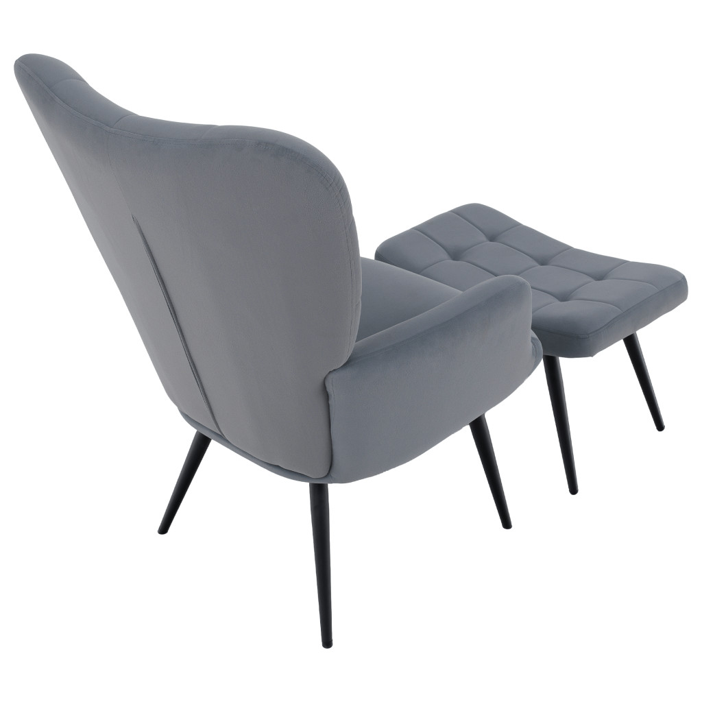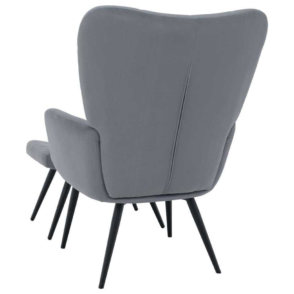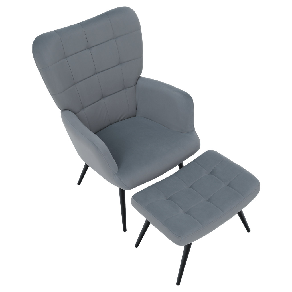 Fotel lábtartóval, szürke Velvet szövet/fekete, HABEN