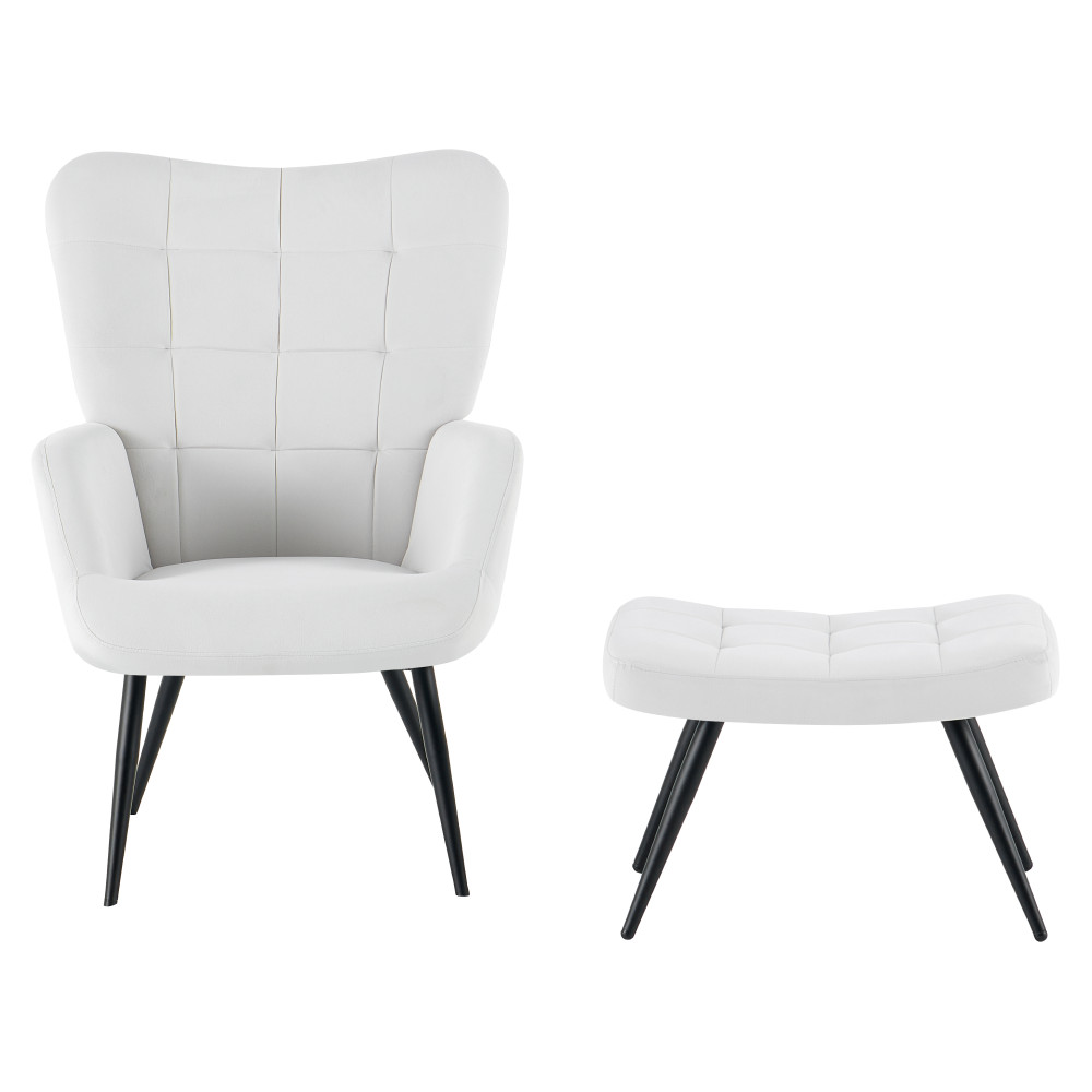 Fotel lábtartóval, világos szürke Velvet szövet/fekete, HABEN