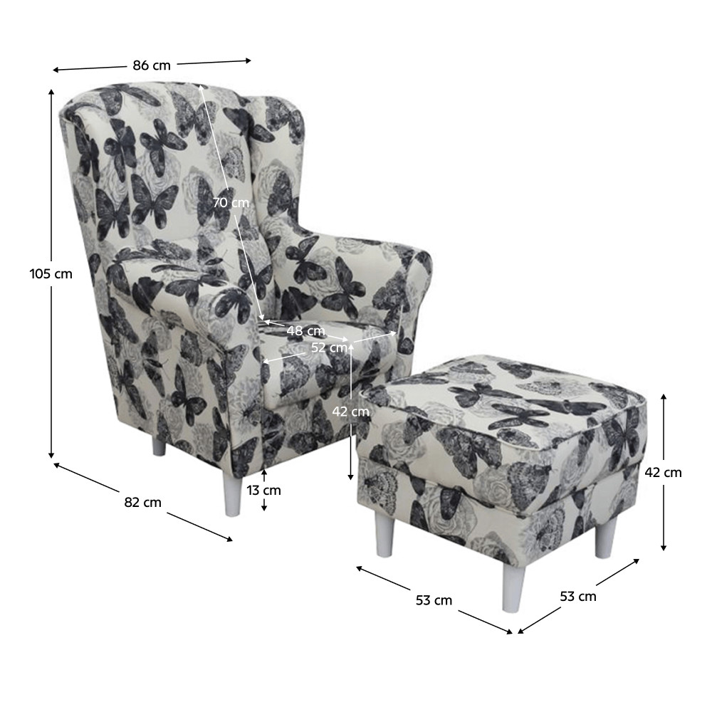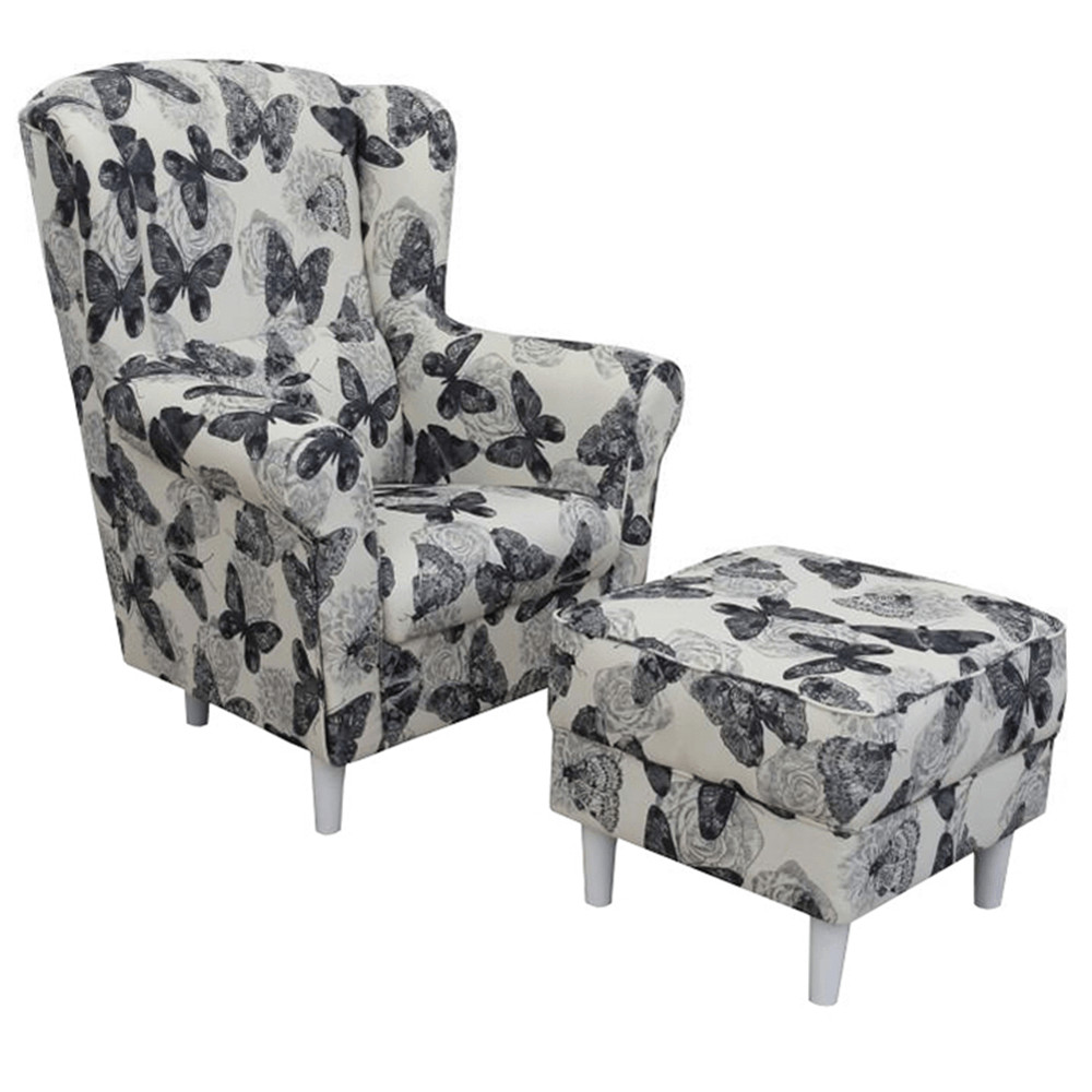 Füles fotel puffal, szövet butterfly 1, ASTRID