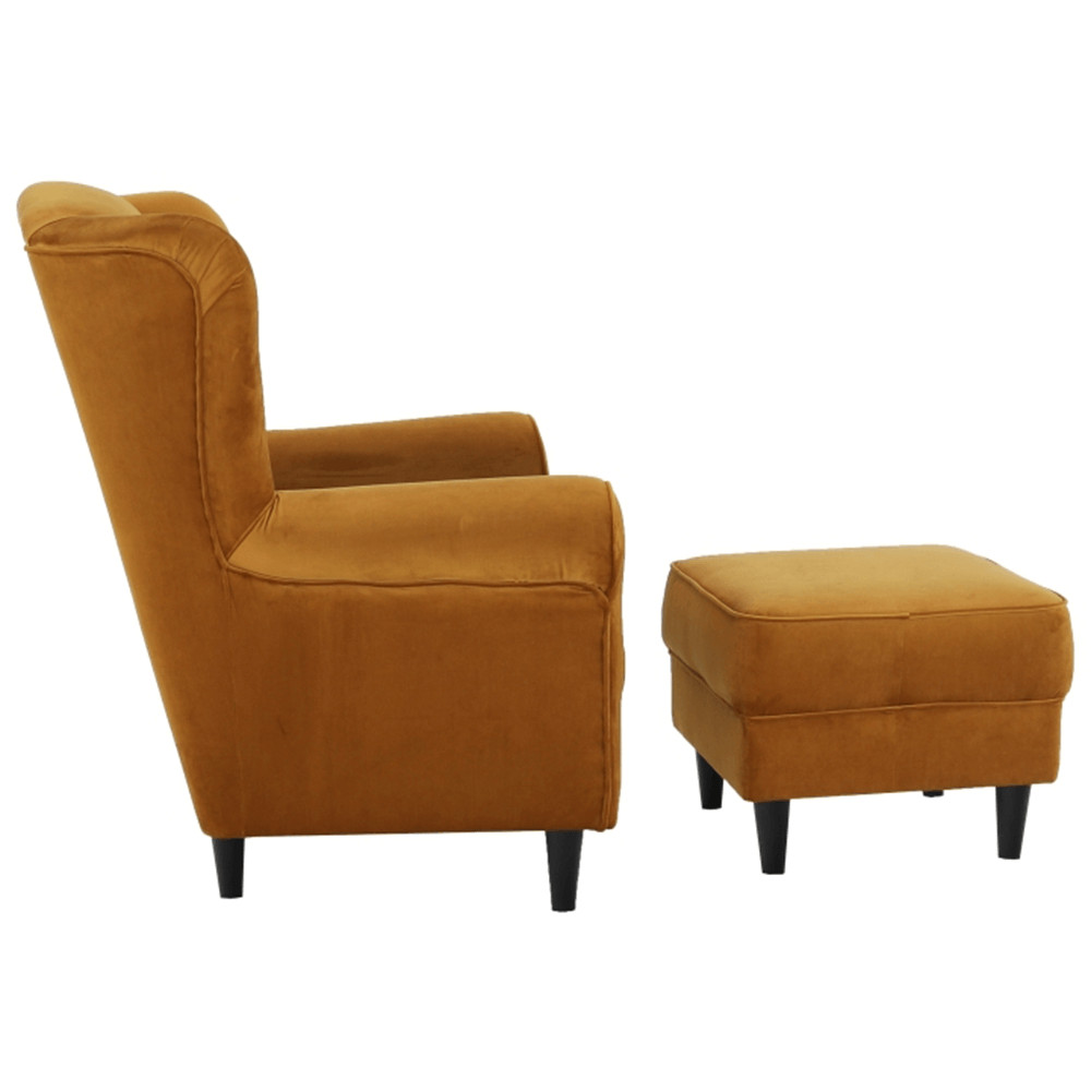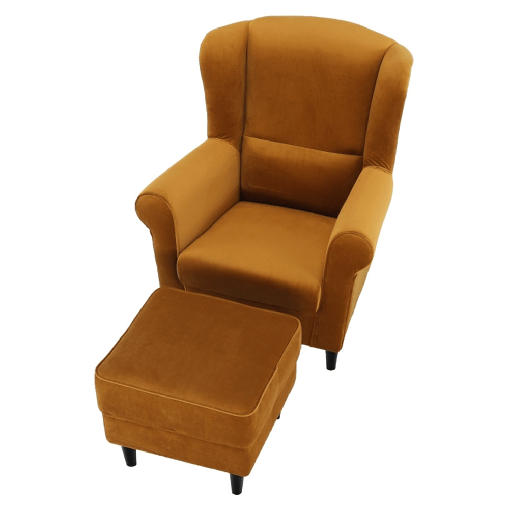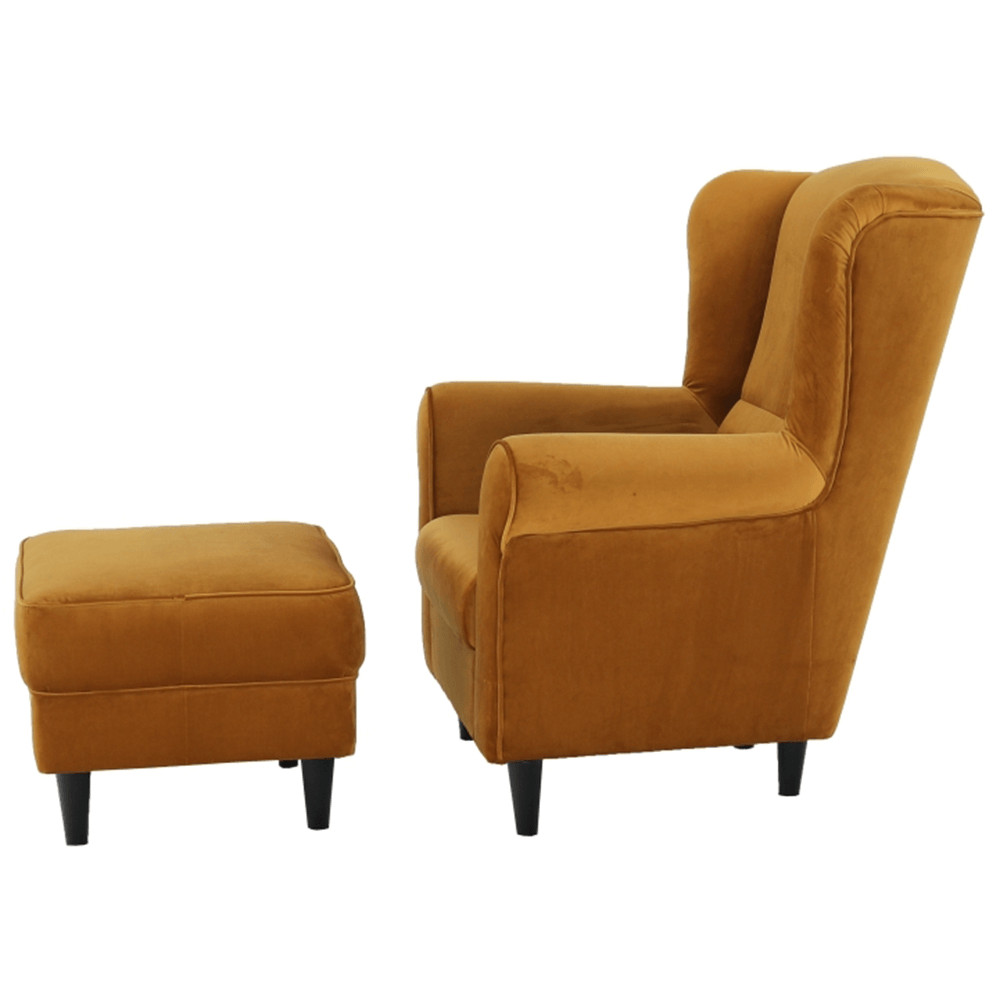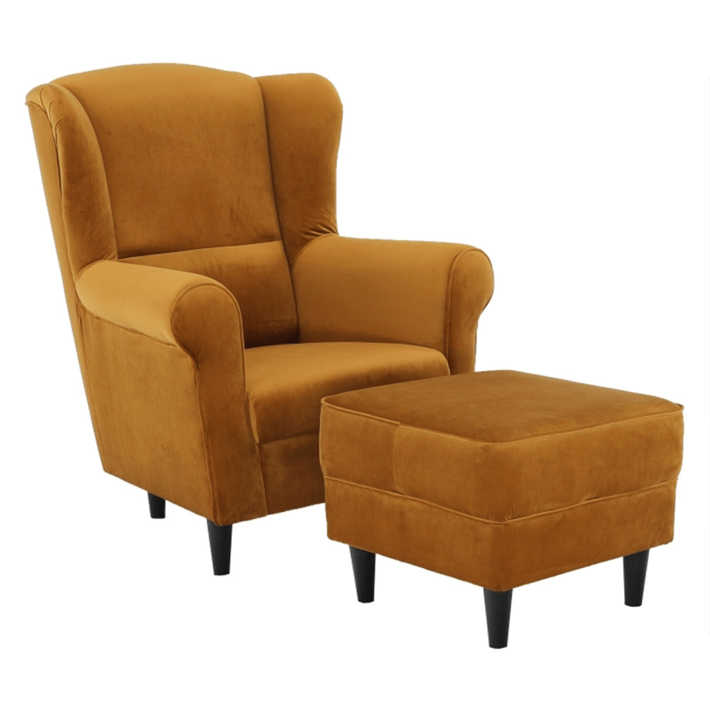 Füles fotel puffal, szövet mustár, ASTRID