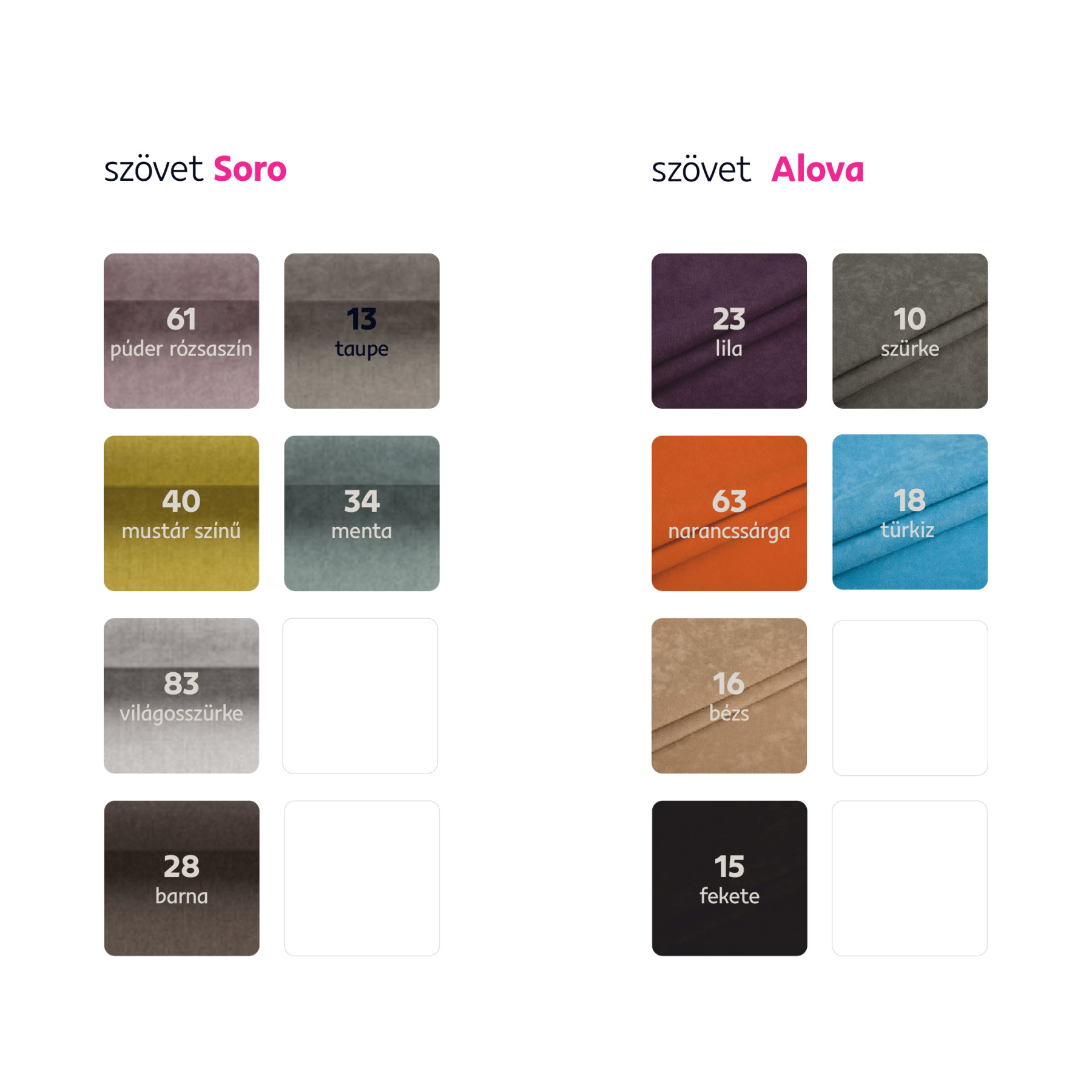 Megrendelhető Astrid Alova szövet színváltozataiban ára 179 500 Ft vagy Soro szövetből ára 181 900 Ft.Egyedi megrendelés esetén szükség van az adott összegnek a 20%-át befizetni,mint előleg. Az előleg befizetése után az Ön követelményét benyújtjuk a gyártónak. Szállítási idő 6-8 hét.
