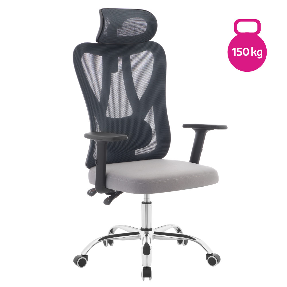 Irodai szék, sötétszürke/világosszürke/króm, teherbírás 150 kg, ADEMIR