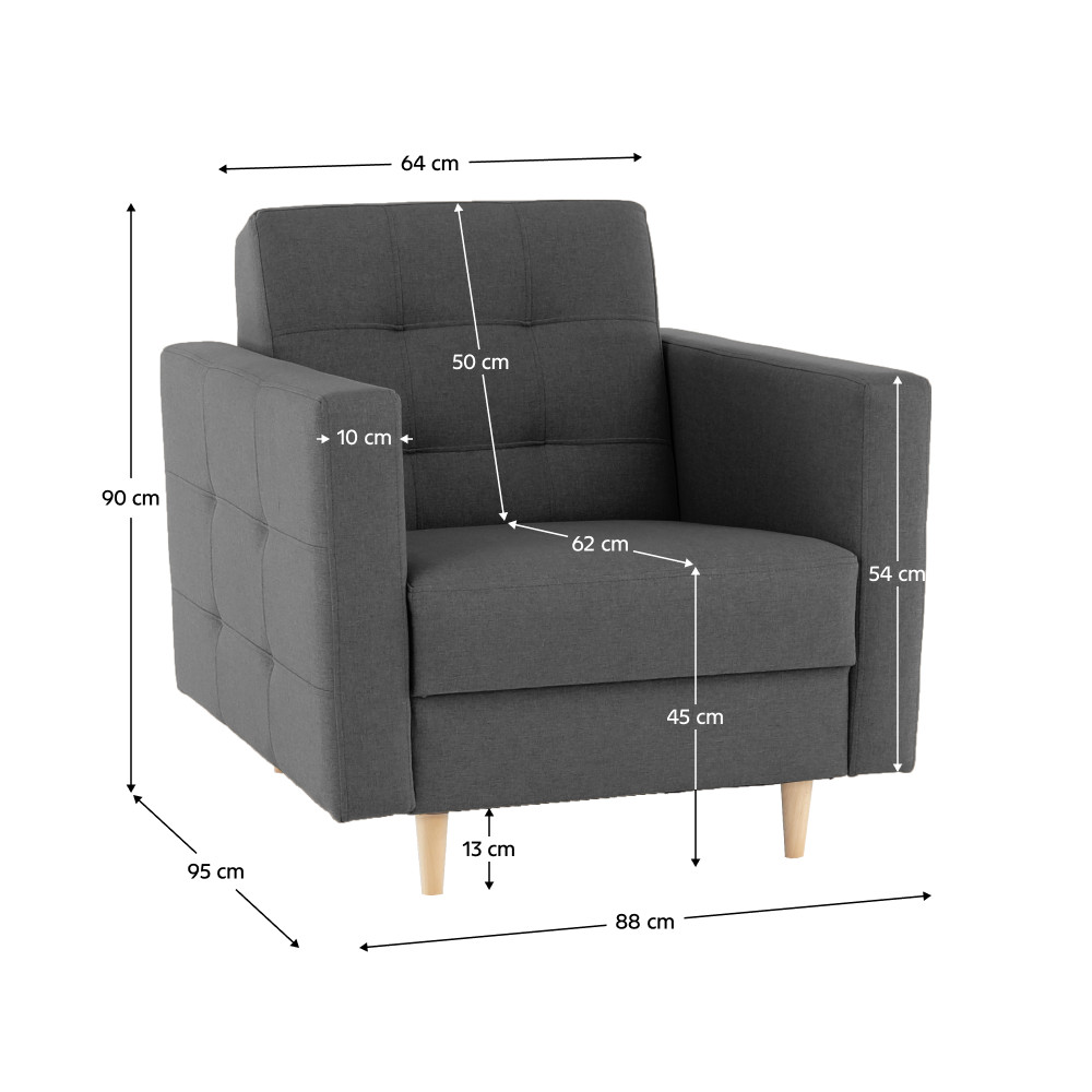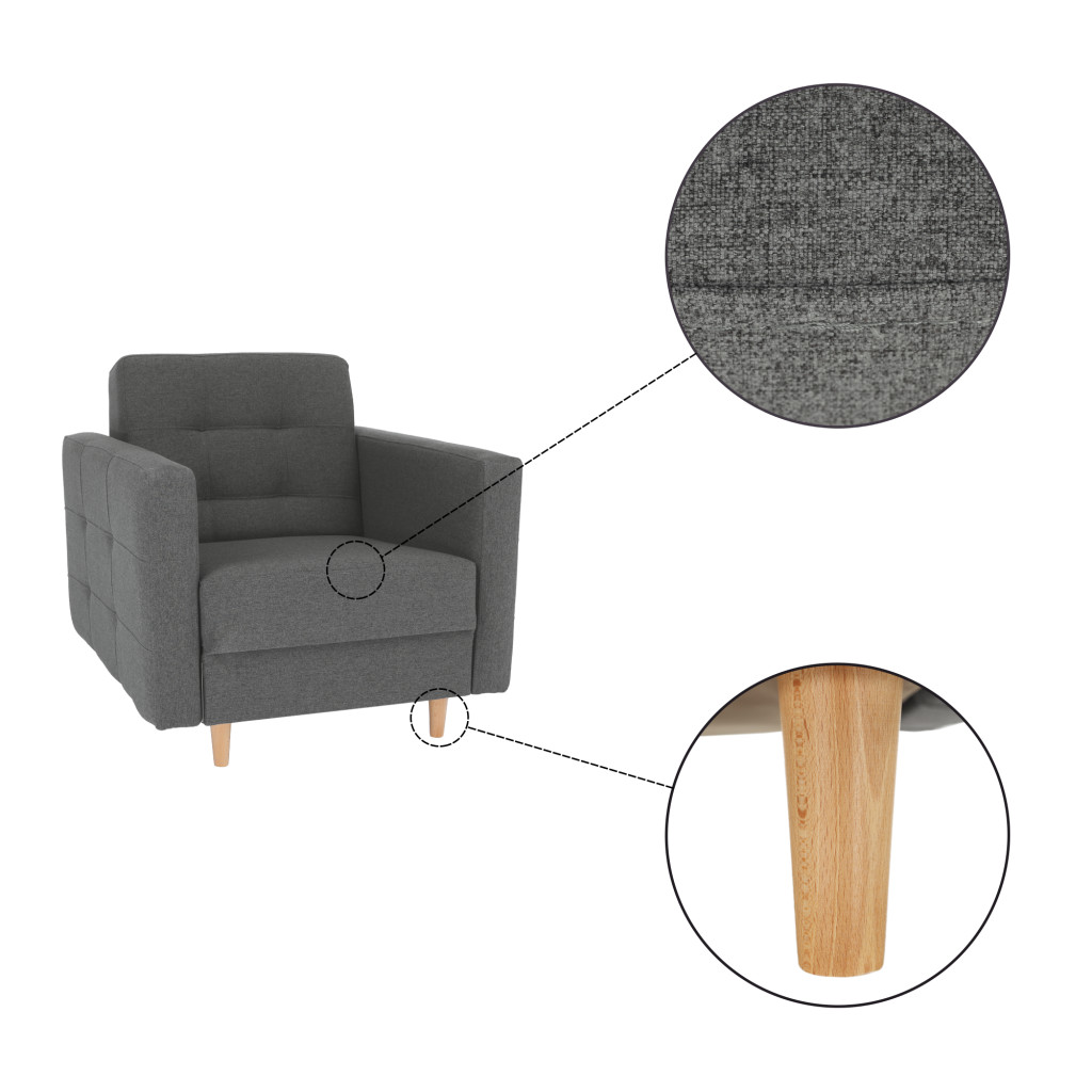 Kárpitozott fotel, sötérszürke anyag, AMEDIA