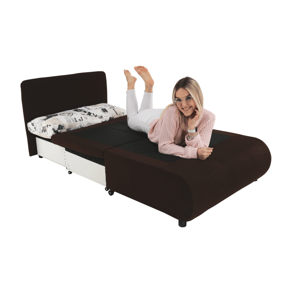 Kinyitható fotel, barna/minta, KENY NEW