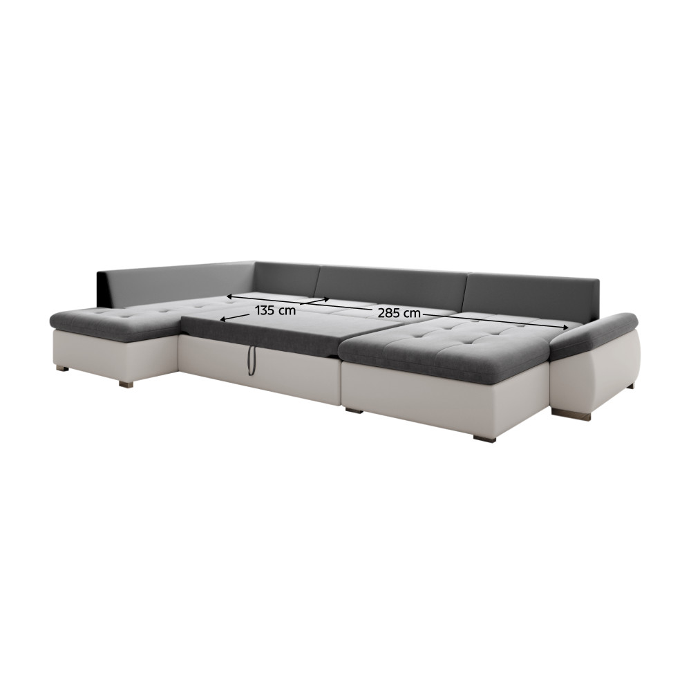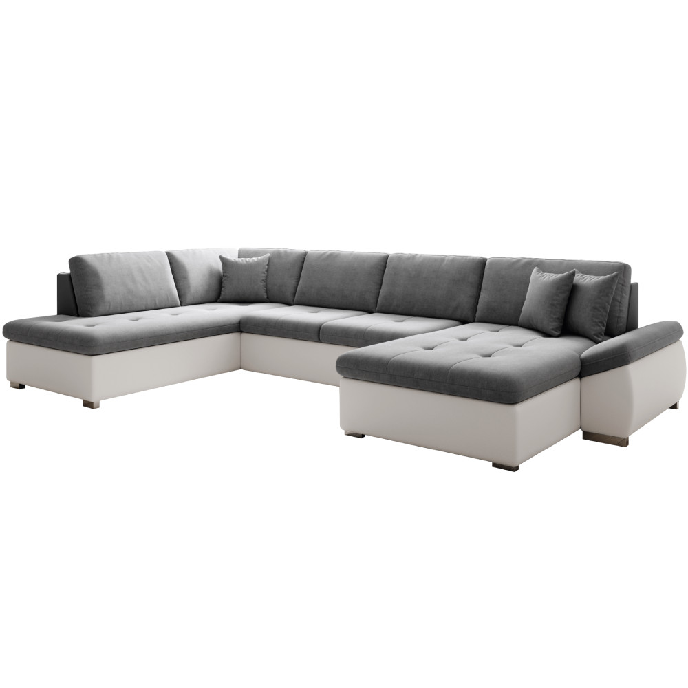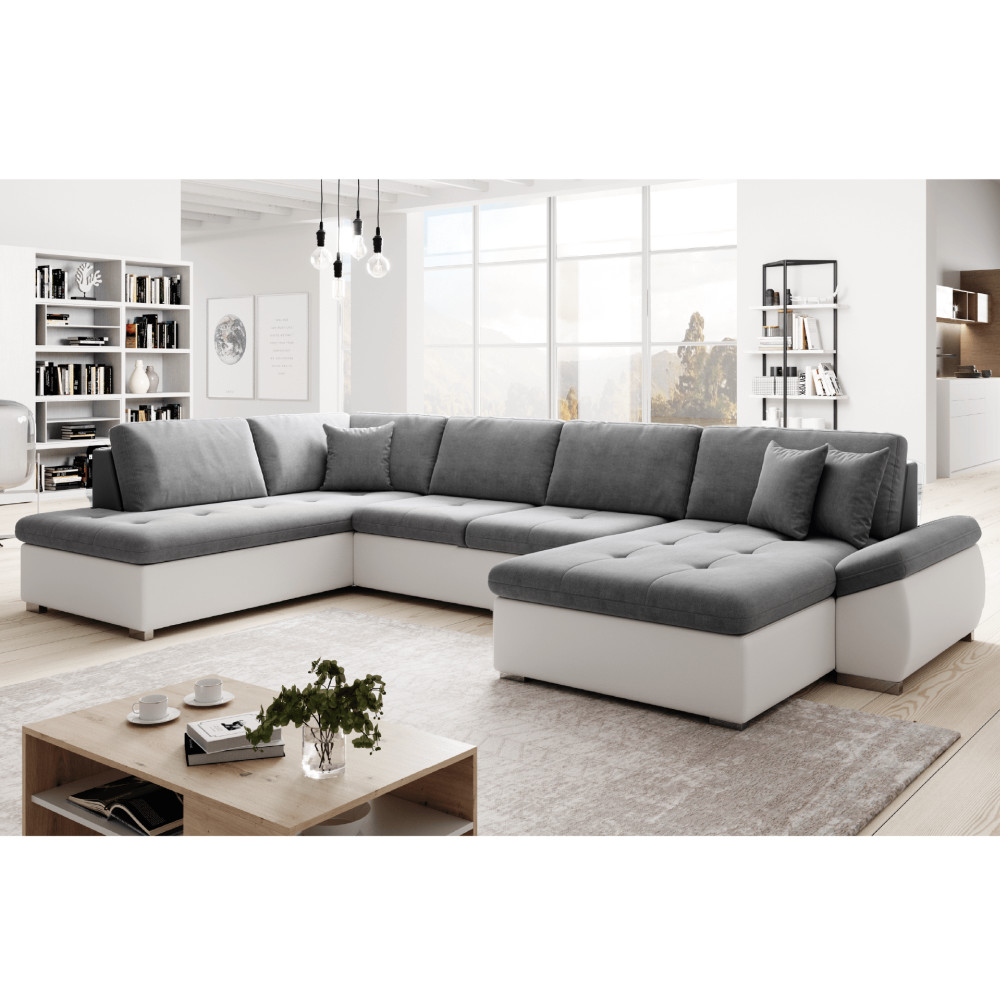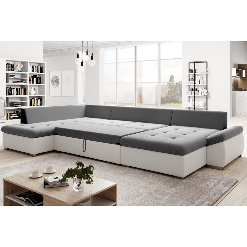 Kinyitható ülőgarnitúra, fehér/szürke, balos, MATAR U