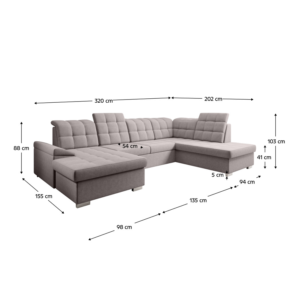 Kinyitható ülőgarnitúra, szürkésbézs Taupe, jobbos, OREO U