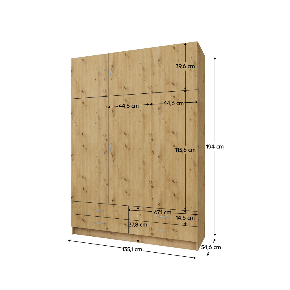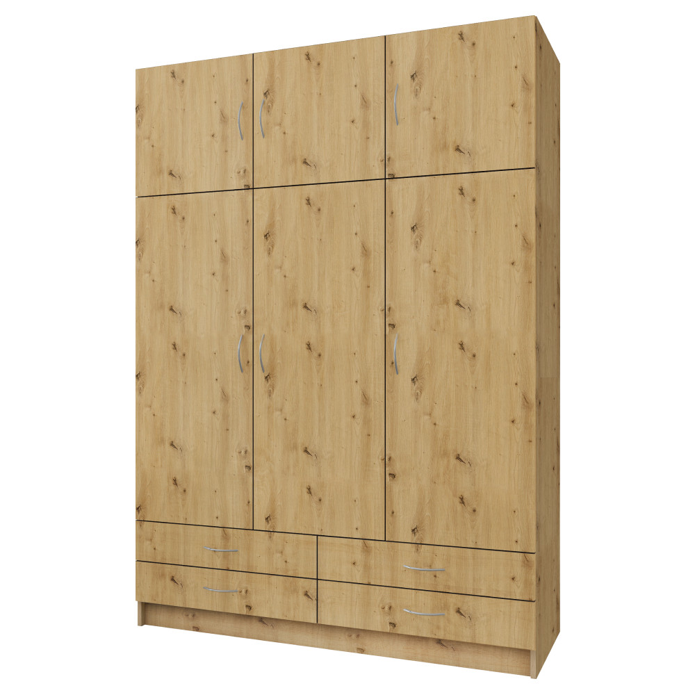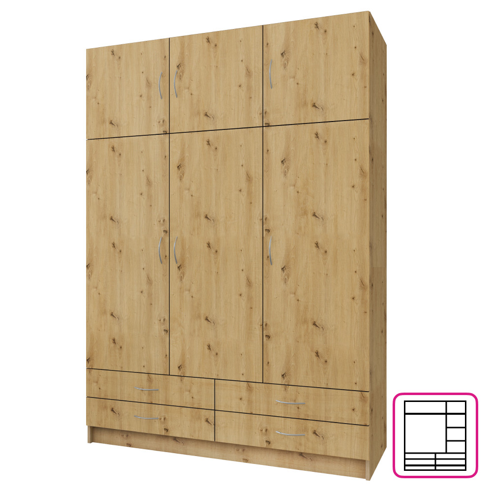 Ruhásszekrény, háromajtós, artisan tölgy, GERI NEW