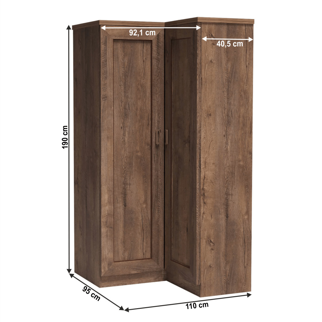 Sarokszekrény polccal, bal oldali változat, tölgyfa lefkas, TEDY TYP T25