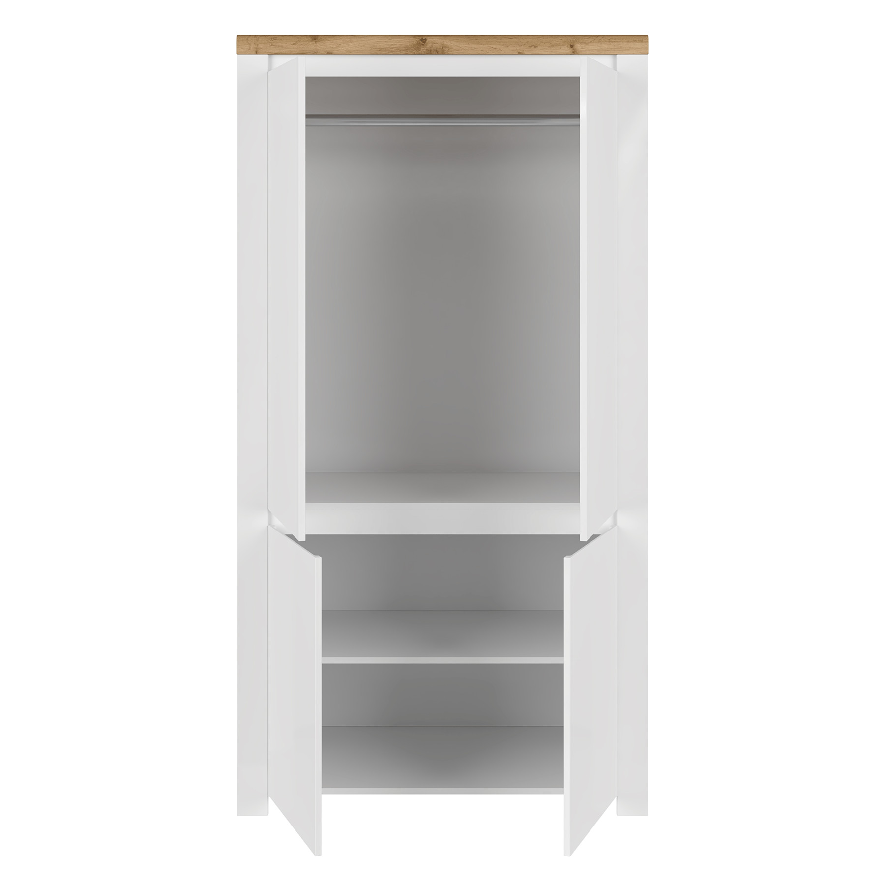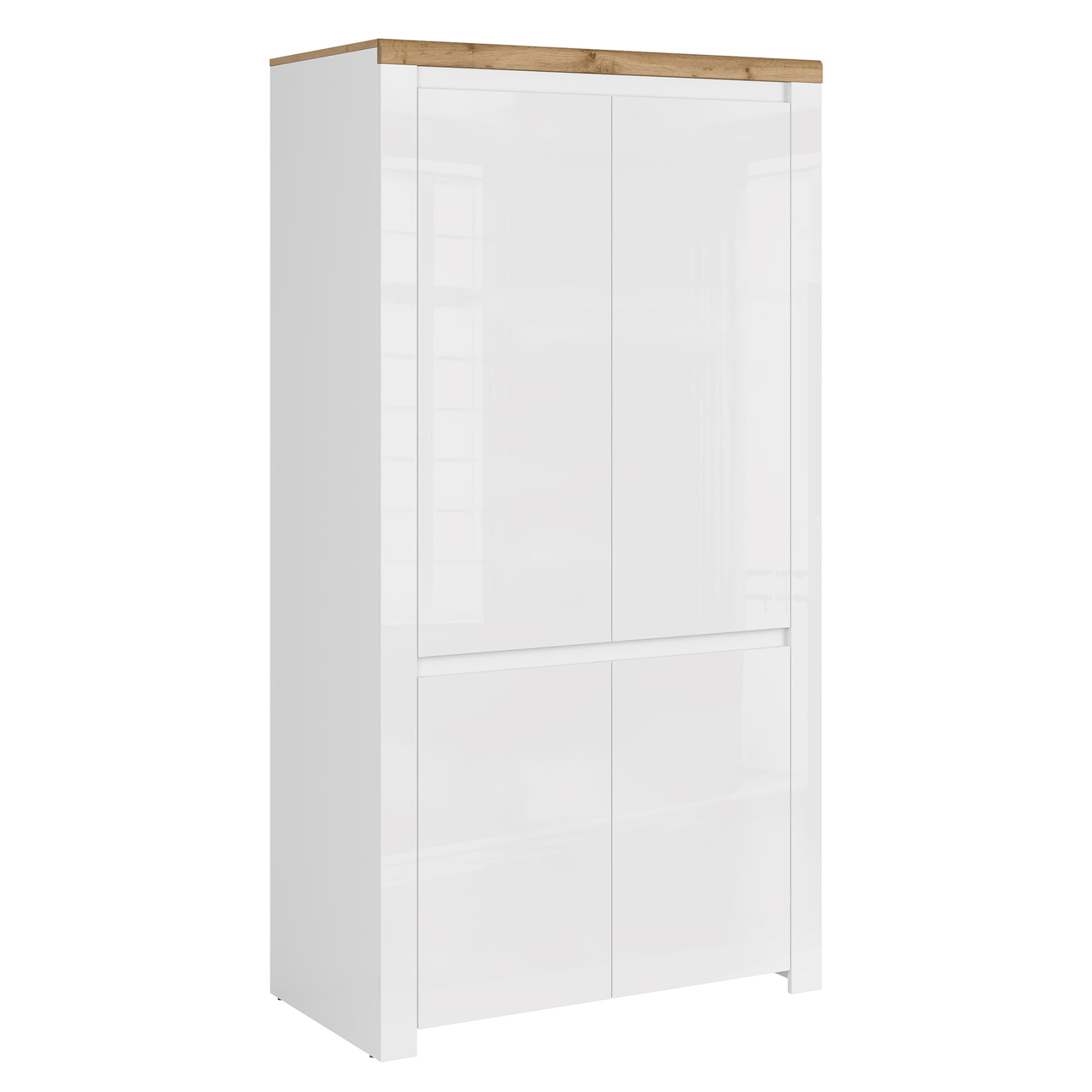 Szekrény 4D, fényes fehér/wotan tölgy, VILGO