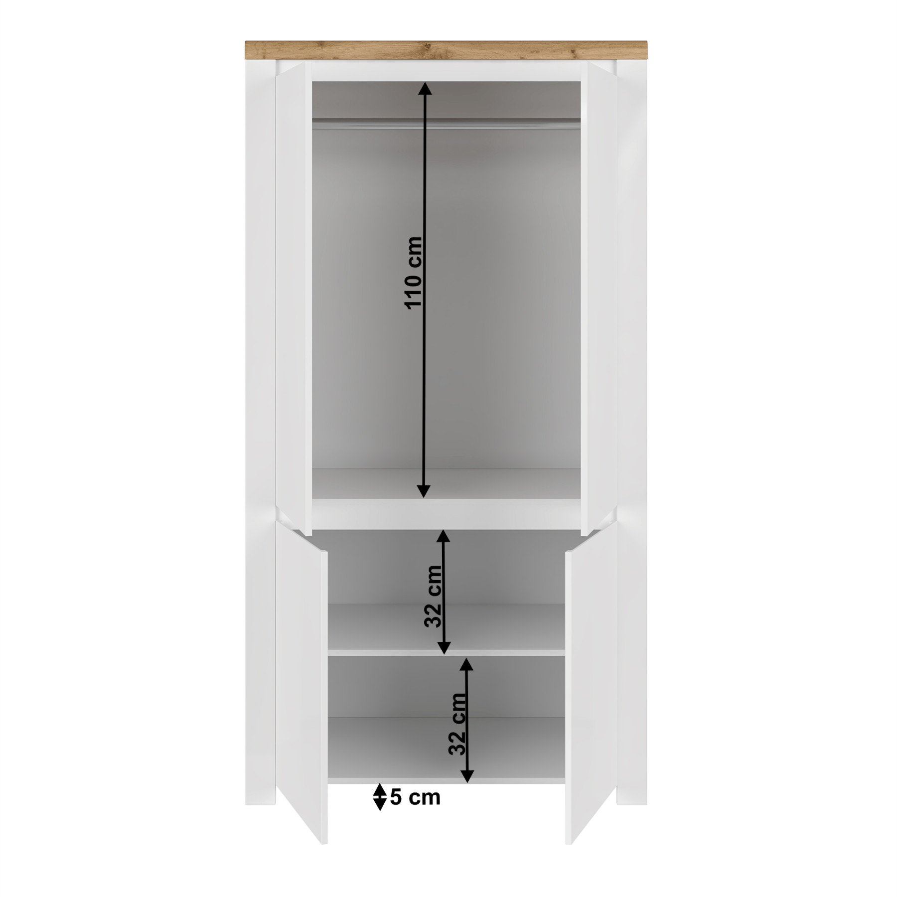Anyag: laminált DTD/ABS élek/MDF Szín: fehér extra magasfényű/wotan tölgy Méretek(SzxMéxMa): 106x56x202 cm Anyag vastagsága: 1,6 - 2,2 cm Az alsó tér magassága a padlótól: 5 cm 4 ajtós 3 polc, 1 akasztórúd A szekrényekben polcok vannak Felső polc magassága: 110 cm Alsó polcok magassága: 32 cm Sok tárhely Fogantyúk nélkül MDF ajtók Bontásban szállítva