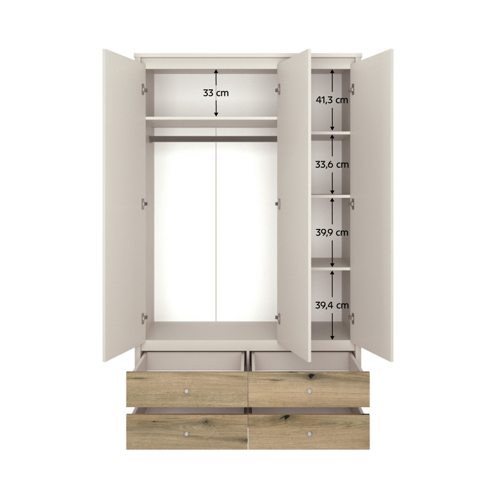 Szekrény tükörrel, kasmír/evoke tölgy, KAROS 3D4S