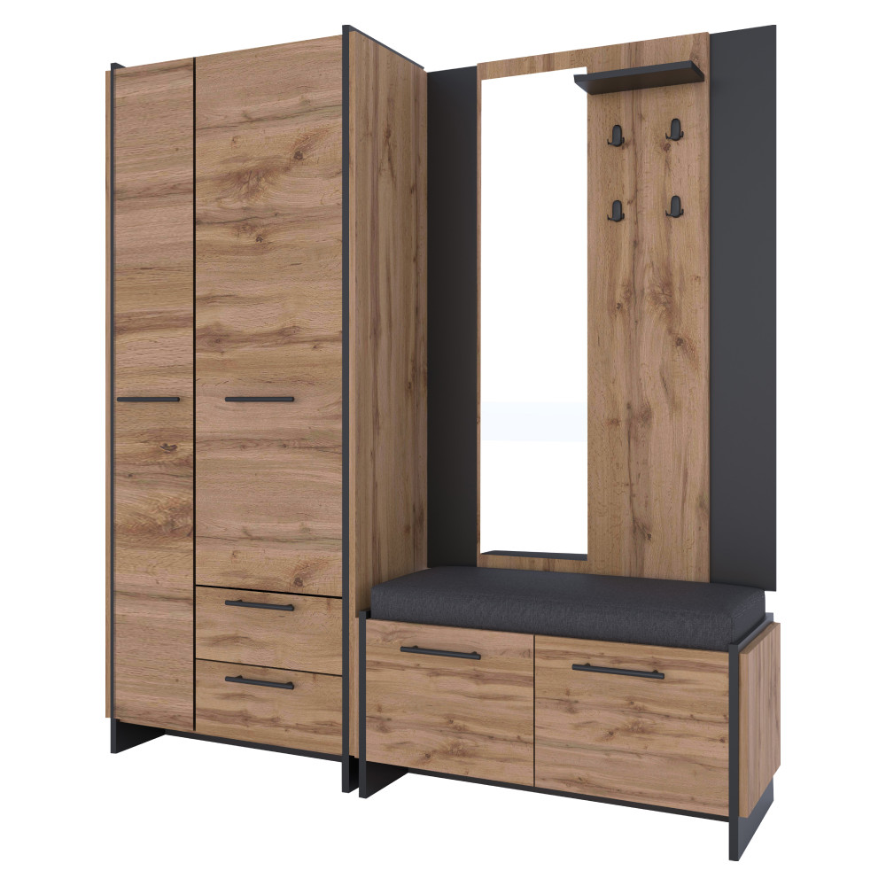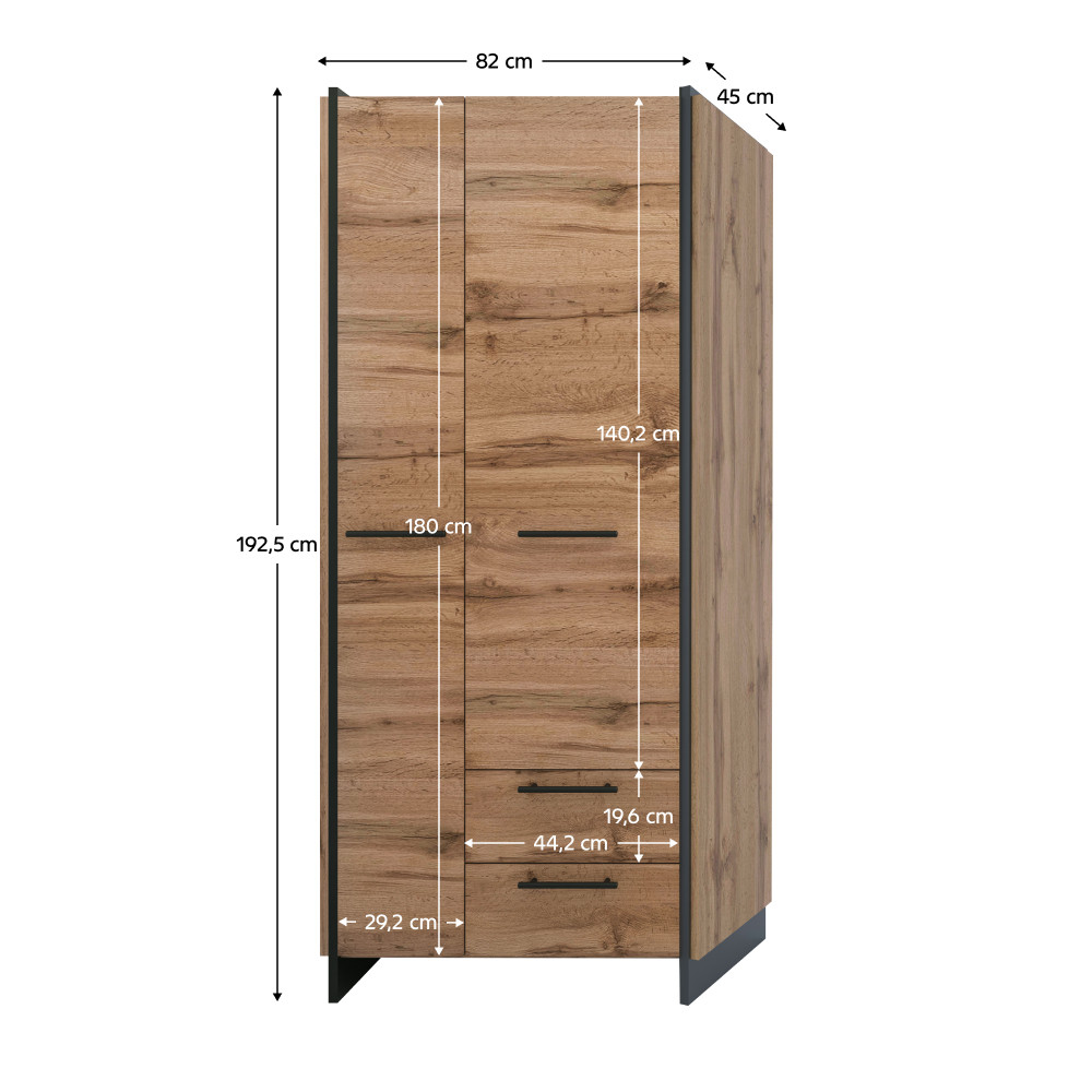 Szekrény, wotan tölgy/fekete, AMONI 2D2S/45