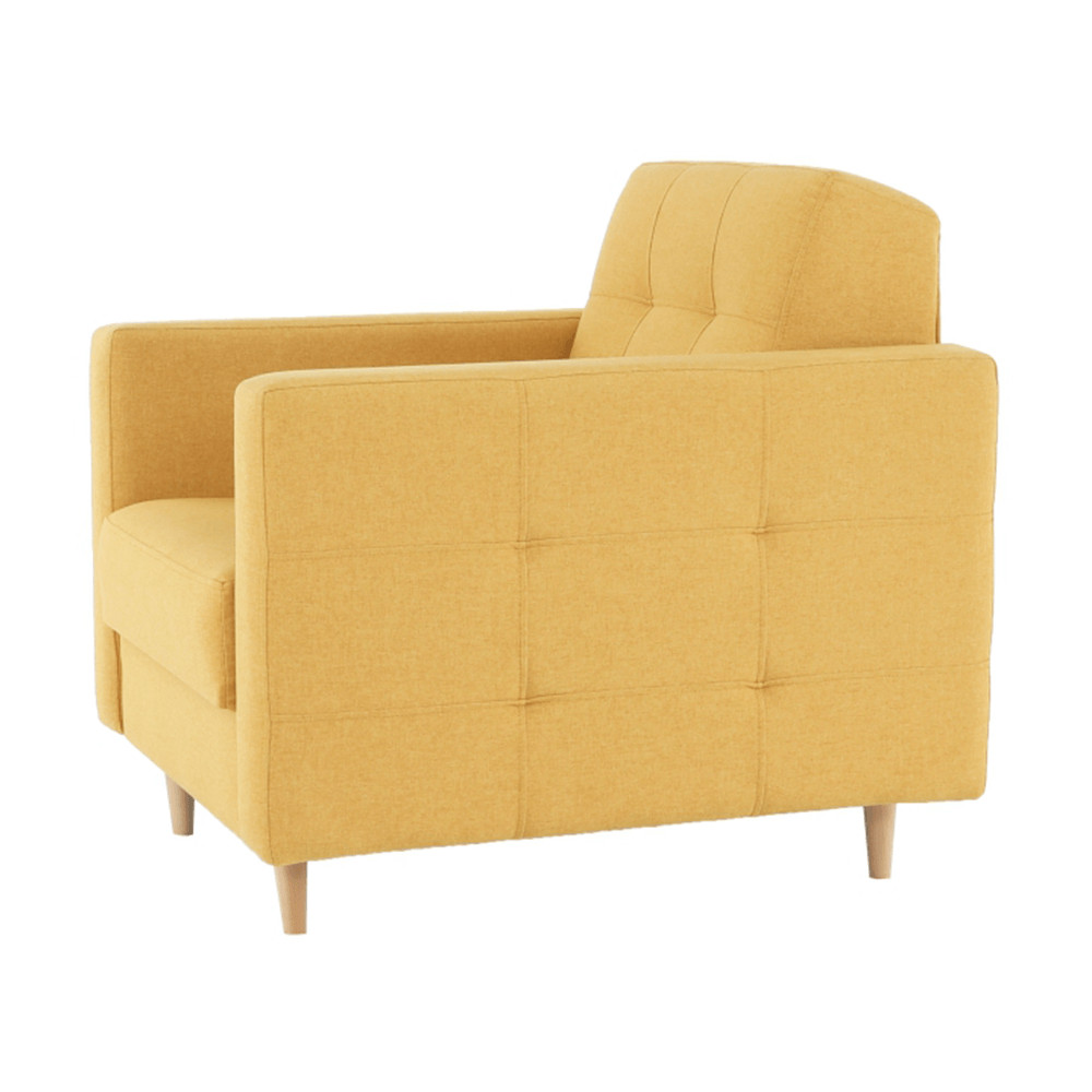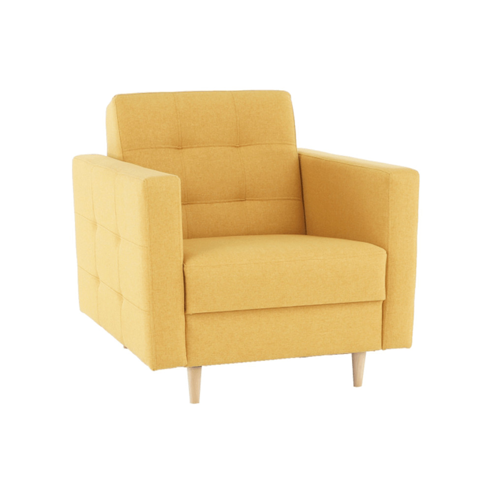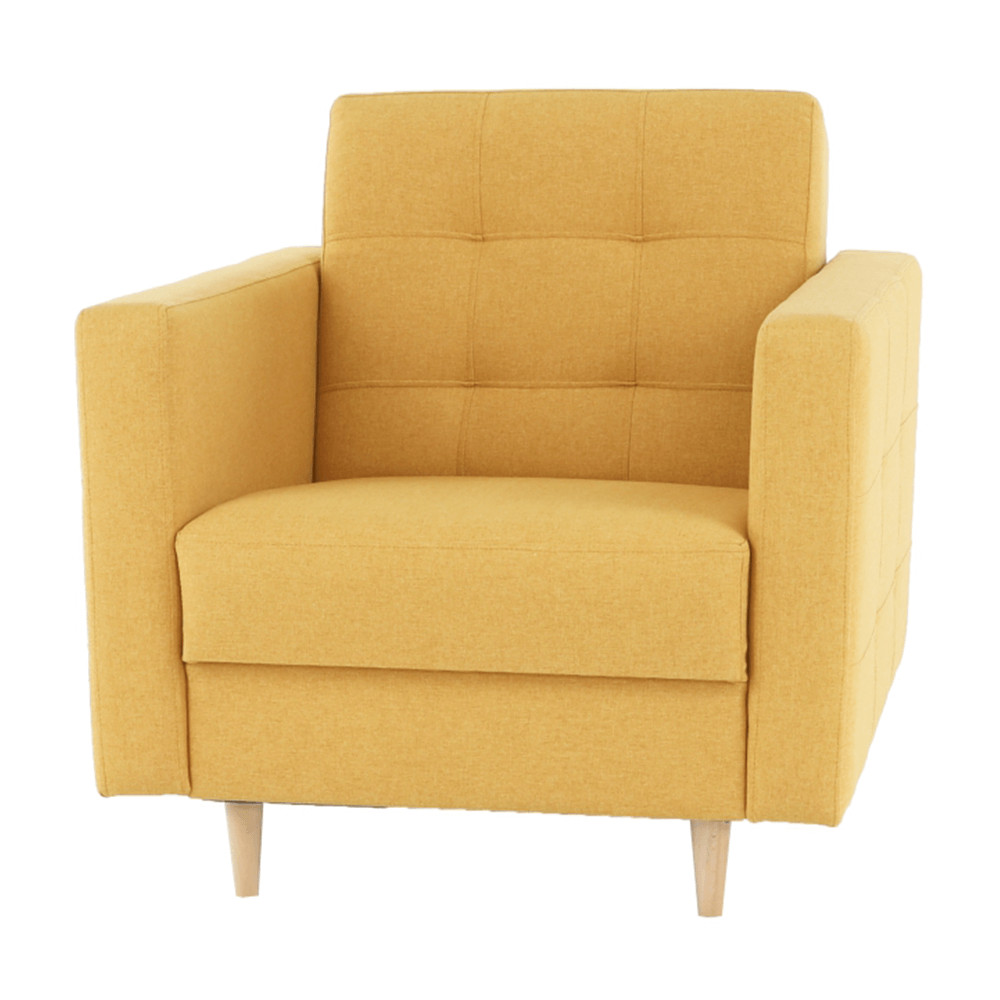 Teljesen kárpitozott fotel, mustár színű anyag, AMEDIA