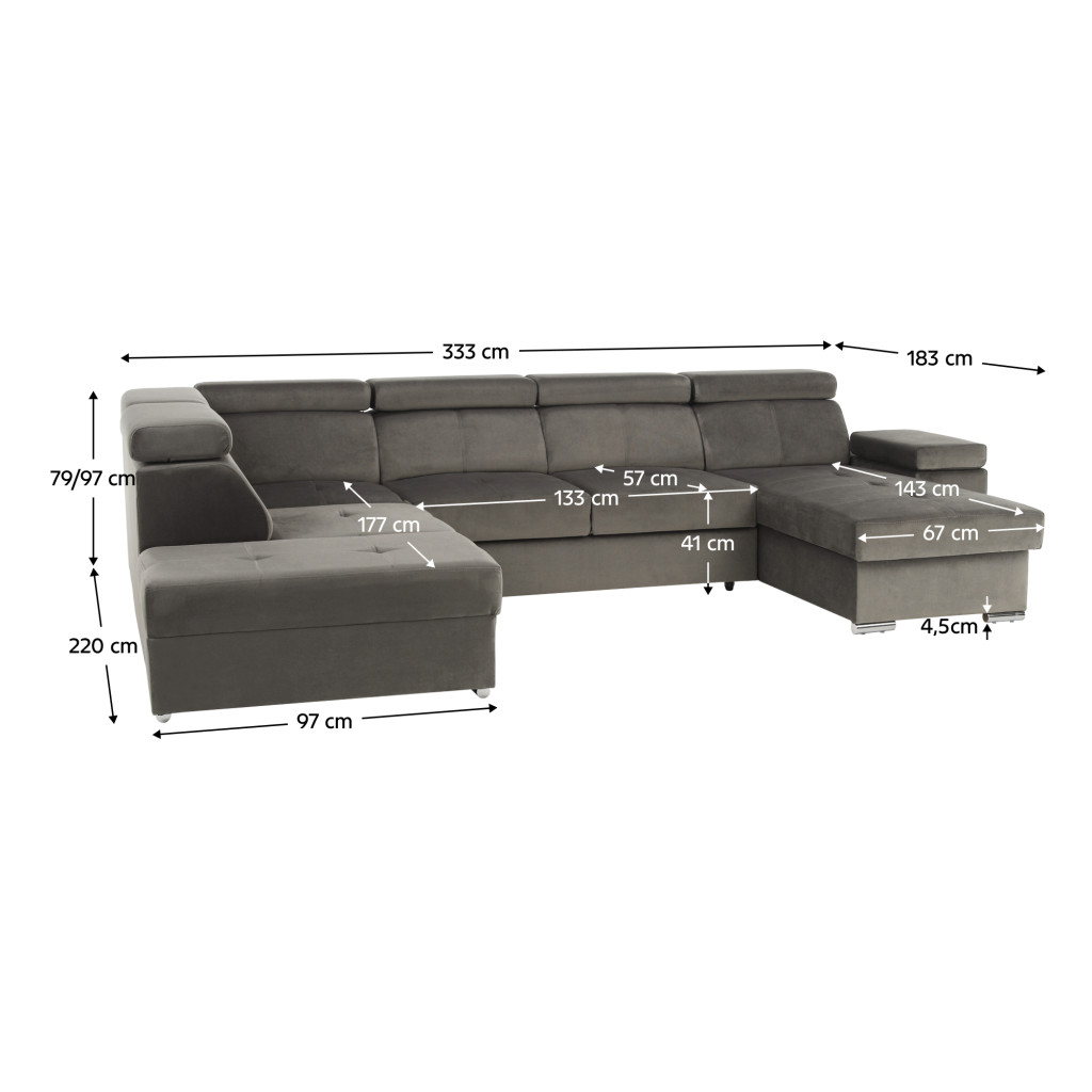 Méretek: (SzxMéxMa): 333x220x79/97 cm