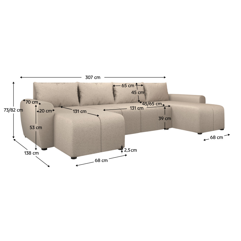 Méretek (SzxMéxMa): 307x138/138x73/82 cm