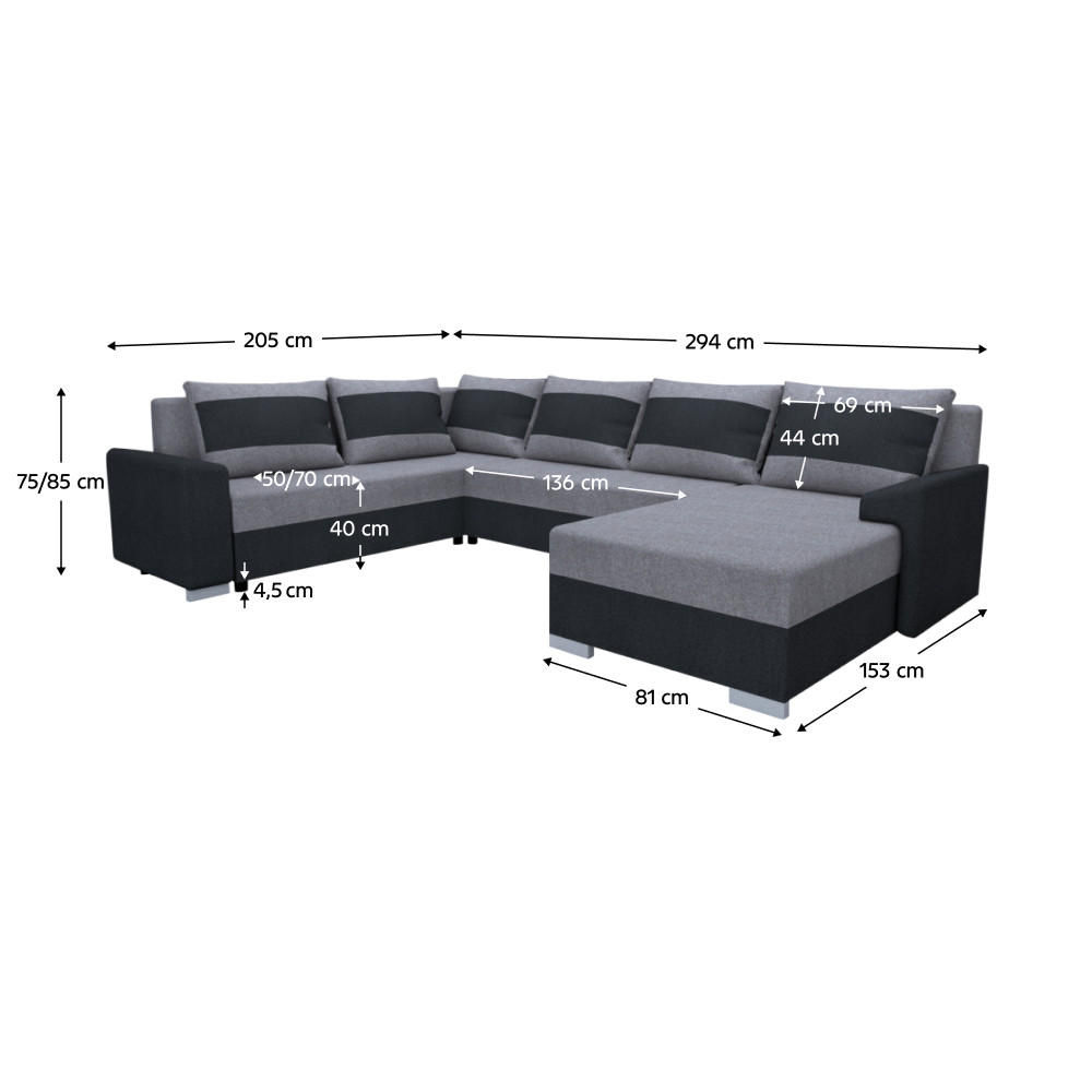 Univerzális ülőgarnitúra, sötétszürke/szürke, ANDRES U UNI