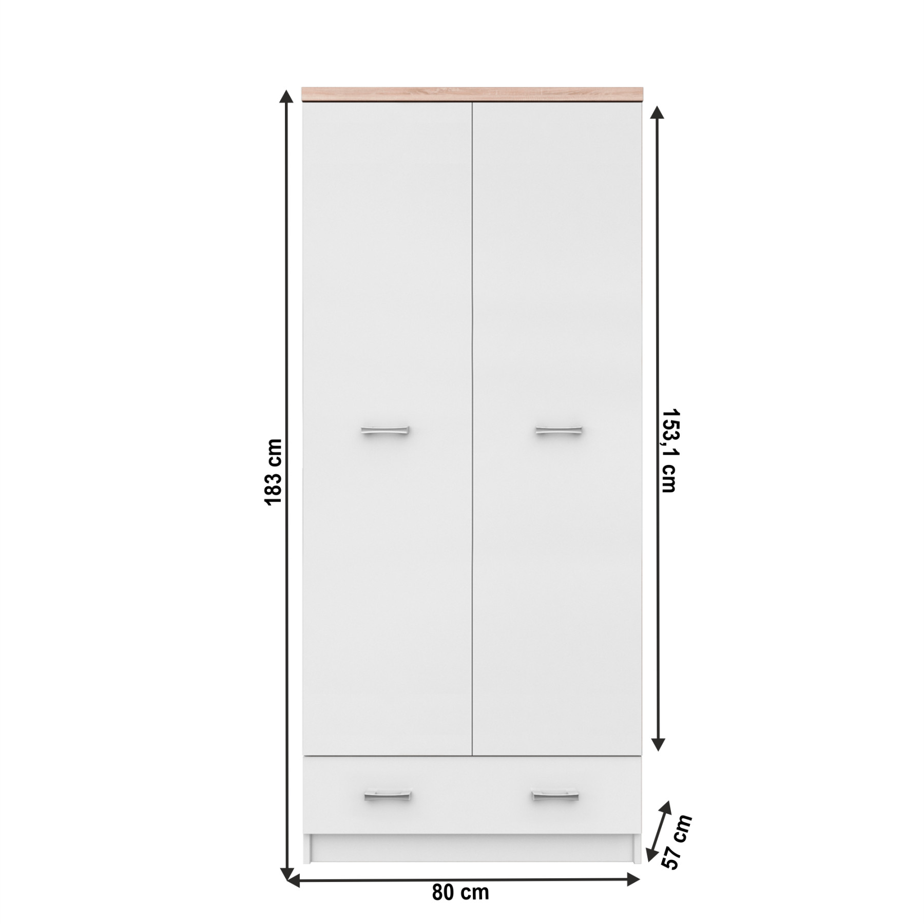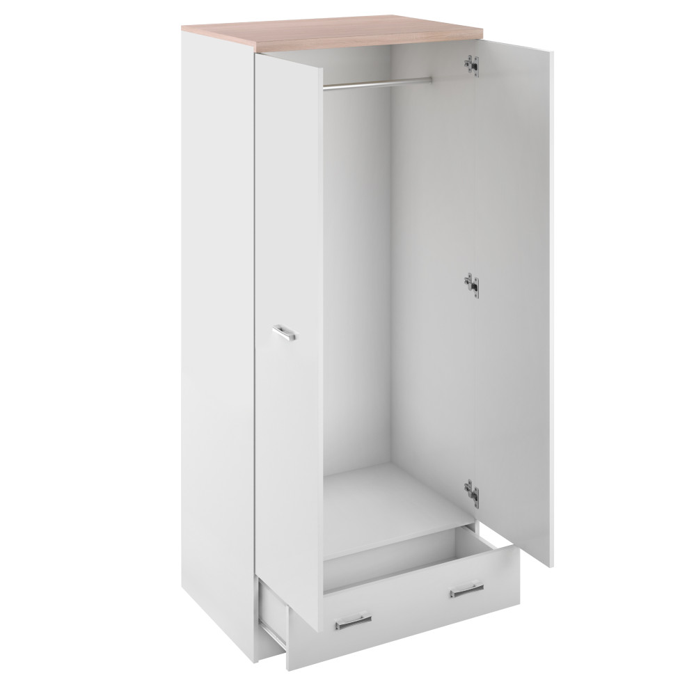 kétajtós szekrény 2D1S, fehér/tölgy sonoma, TOPTY TYP 01