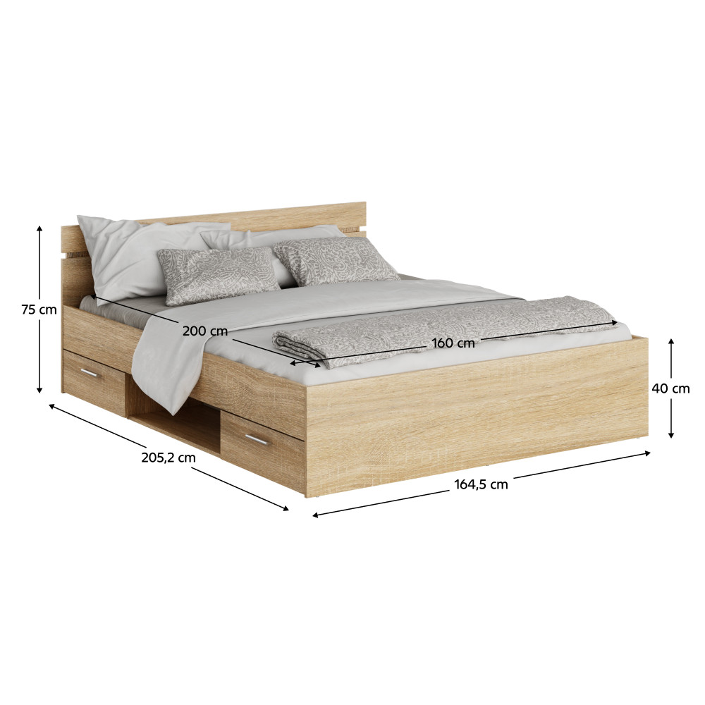 Ágykeret, 160x200, sonoma tölgyfa, MICHIGAN NEW