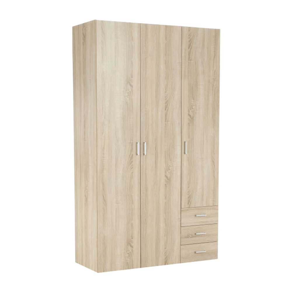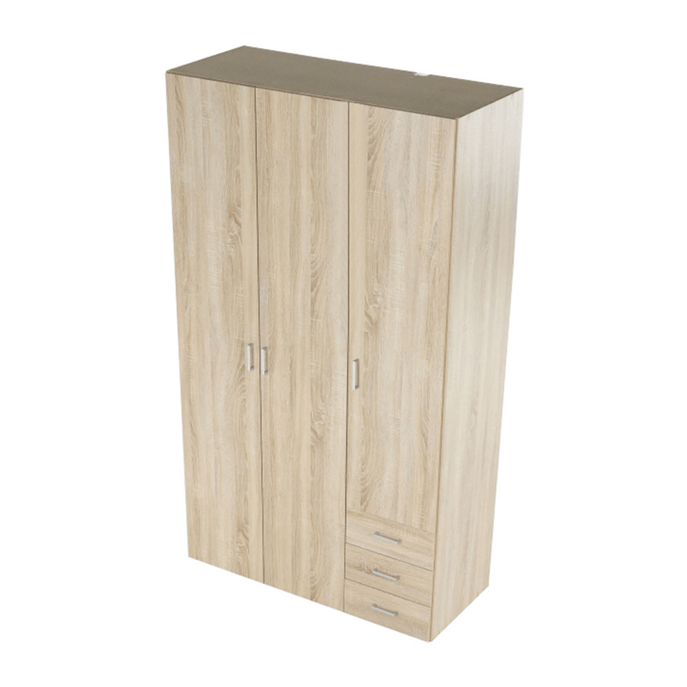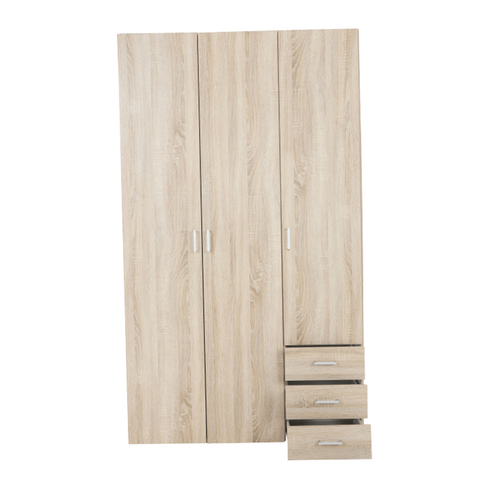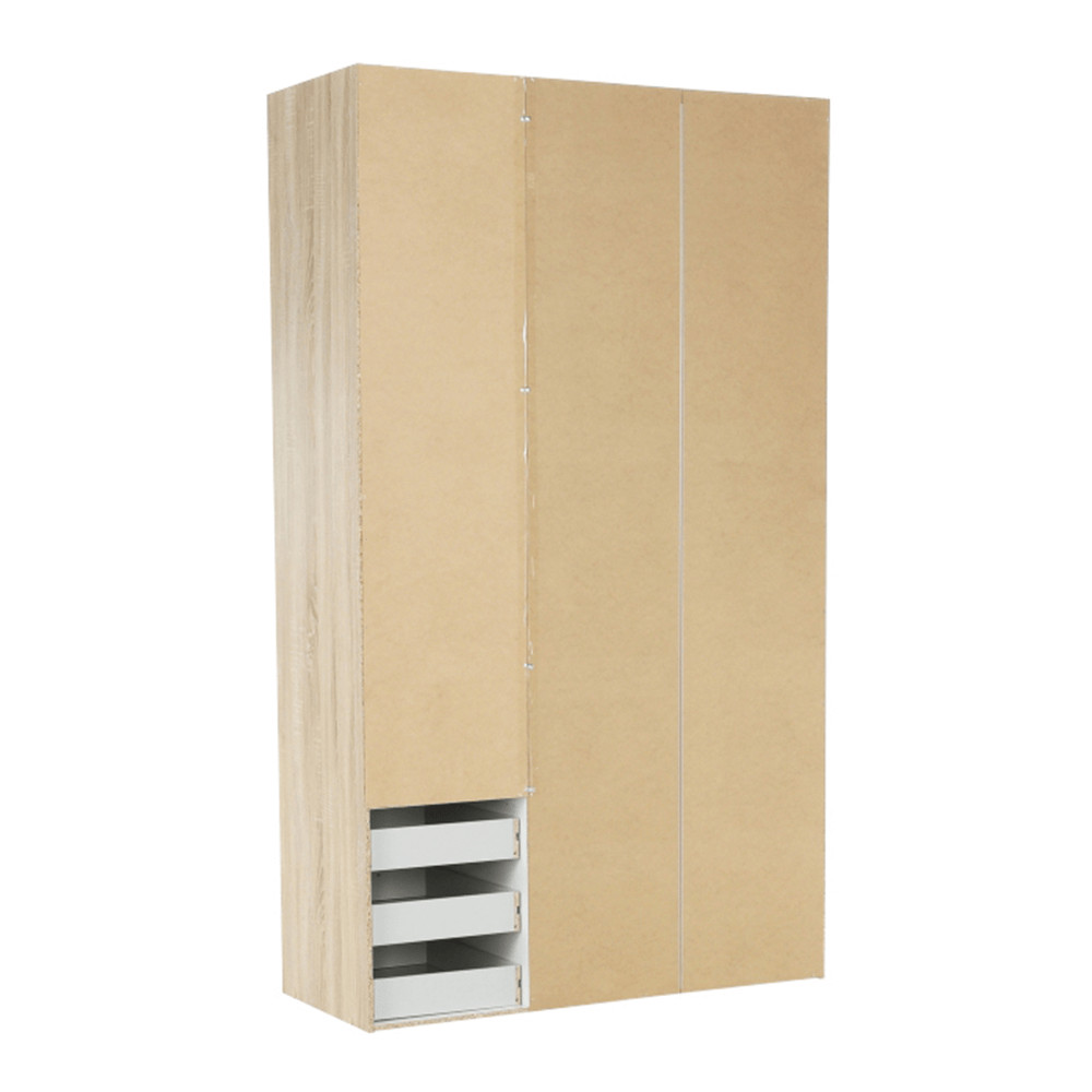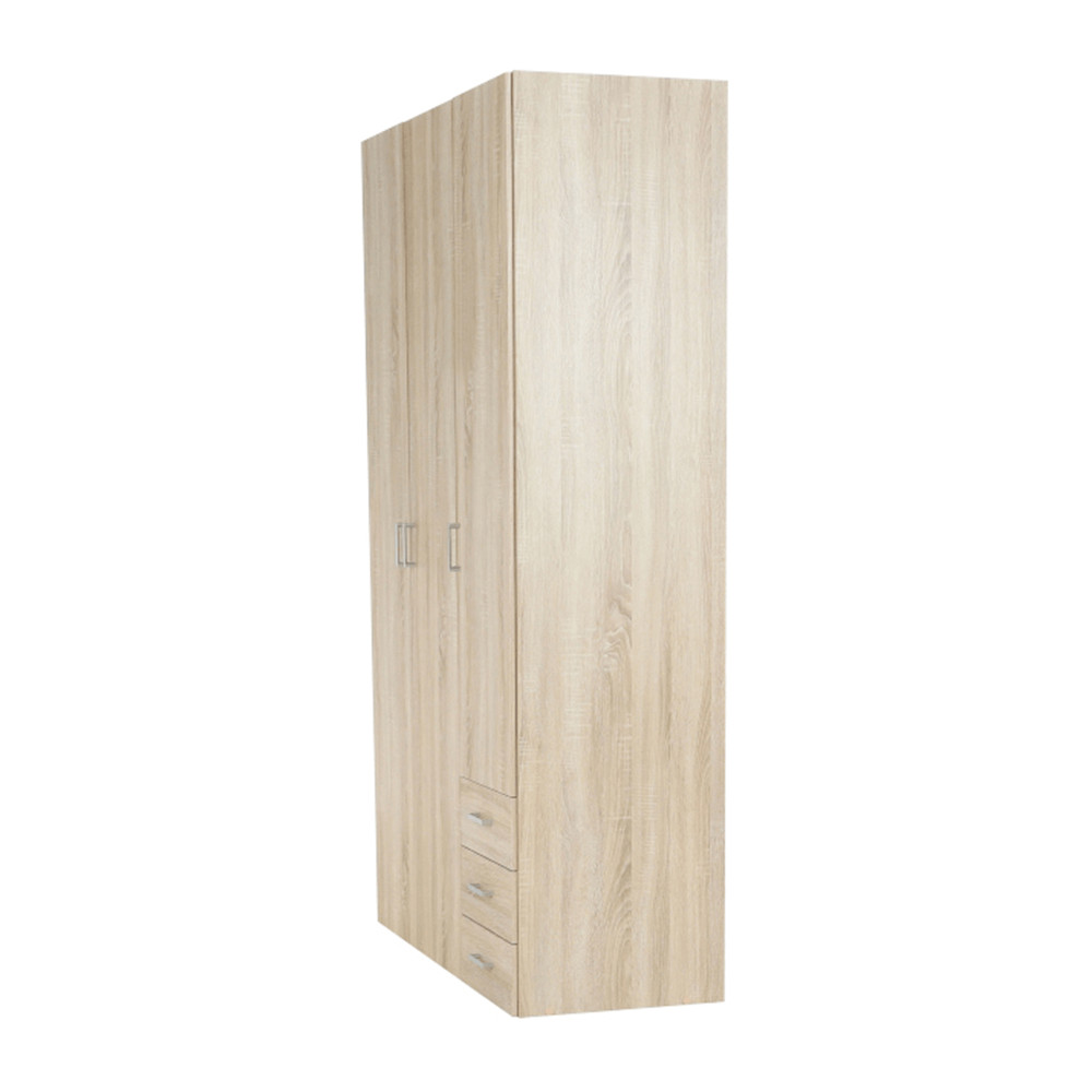 3 ajtós szekrény akasztórúddal és polccal, oldalsó szekrények polcosak, 3 fiók, GWEN 70429