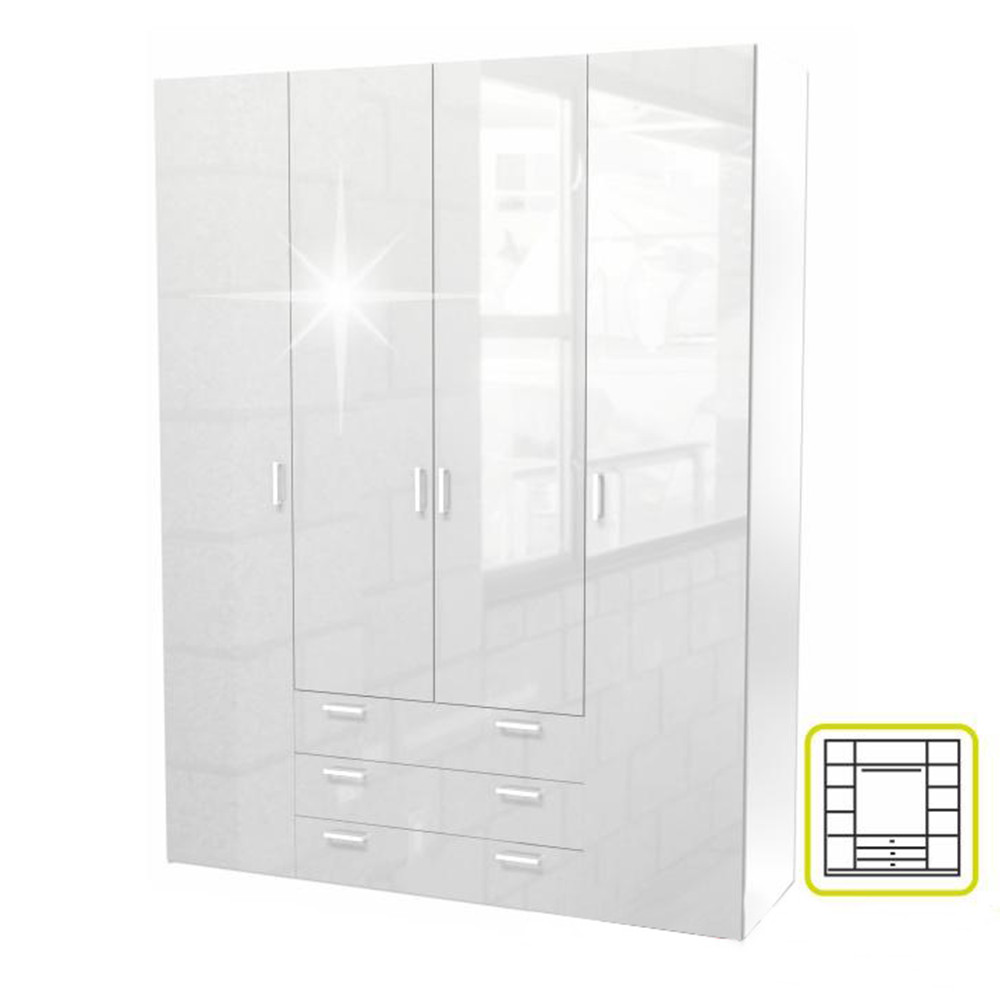 szekrény, 4 - ajtós, fehér extra magasfényű, GWEN 70429