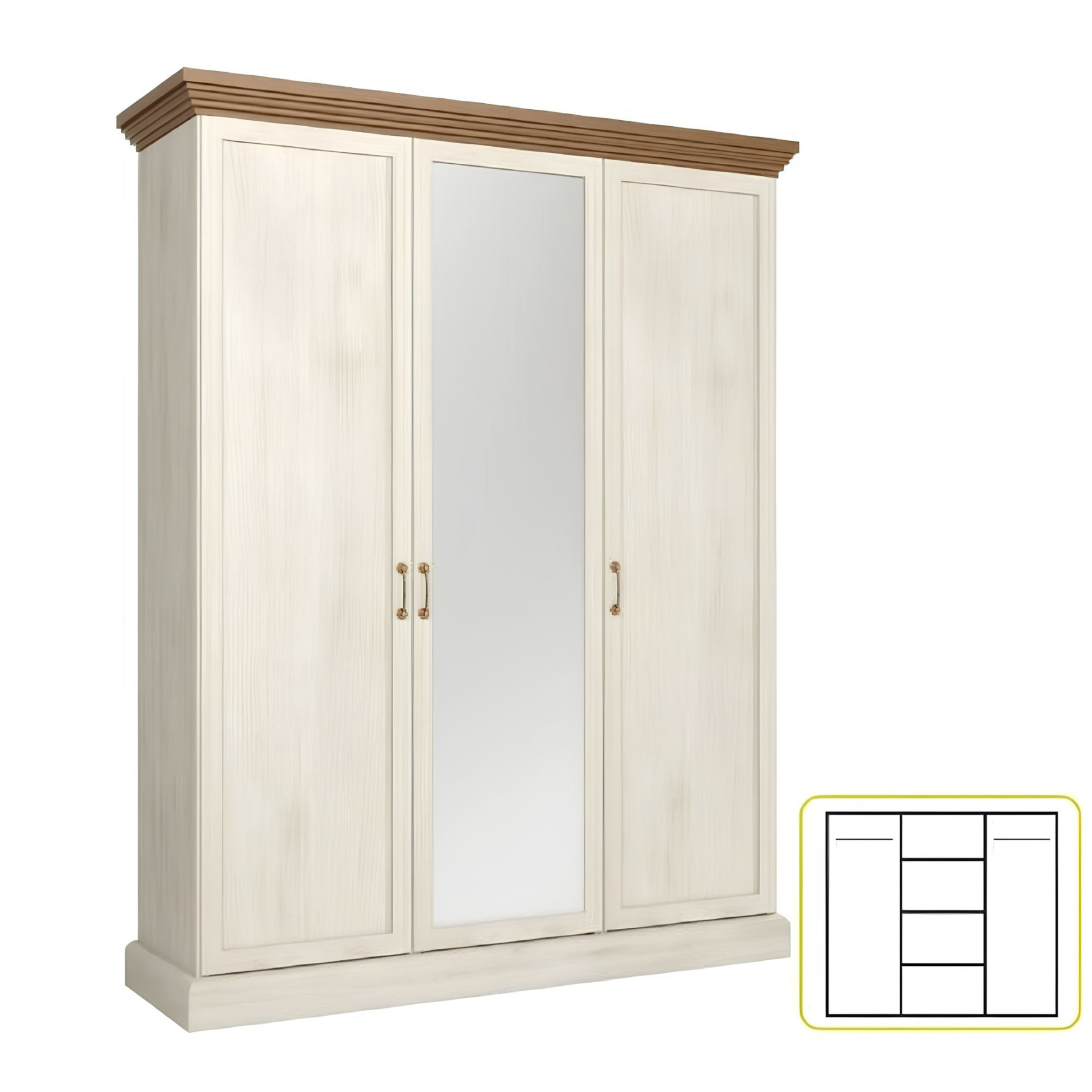 ROYAL S3D akasztós és polcos szekrény tükörrel - az elegáns provence-i stílusú ROYAL elemes bútorcsaládból